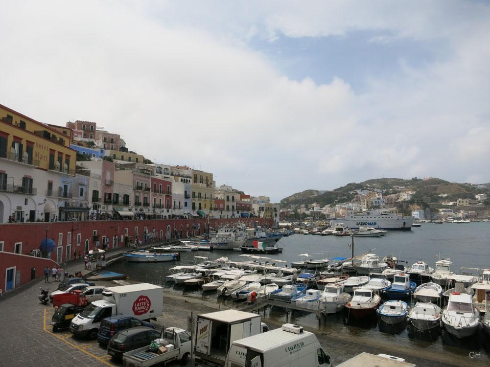 IMG_0746Die pontinischen Inseln befinden sich wenige Kilometer vor der Küste Lazios. Ponza, die größte Insel des Archipels, ist mit ihren wunderschönen Buchten und malerischen Häusern zweifellos die Hauptattraktion. Verschiedenste Gesteinsarten lassen das Meer vor der Insel in allen möglichen Farben leuchten. Obwohl Ponza ein beliebtes Ferienziel ist, kommt im Vergleich zu anderen Mittelmeerinseln dennoch kaum Hektik auf, da die pontinischen Inseln bei ausländischen Touristen kaum bekannt sind. Vor allem das kleine Inselchen Ventotene, welches von einem Meeresschutzgebiet und einer sehenswerten Unterwasserlandschaft umgeben ist, verströmt noch das Flair eines Urlaubsparadieses für Aussteiger. Nur am einzigen Strand der Insel, welcher durch einen kleinen Tunnel vom Ort her betreten werden muss, tummeln sich die zumeist jungen Touristen aus Neapel und Rom. Verlässt man den Strand, verlieren sich die Aussteiger und Tauchbegeisterten aber schnell zwischen den wenigen Häusern und Straßen des einzigen Ortes Ventotene.