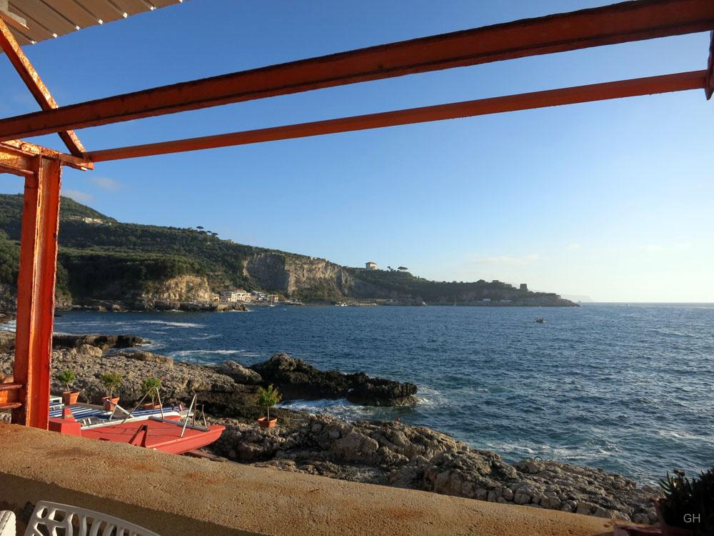 Ausblick von den Tuffsteinterrassen Sorrents Richtung Vesuv